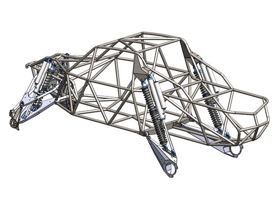 - Complete chassis with front and rear suspension as shown above with 3d models and laser cut files.