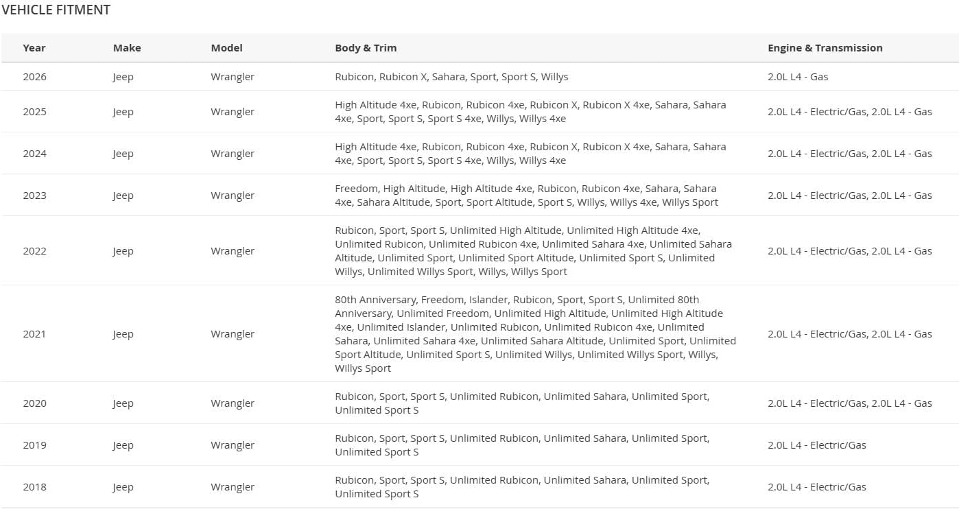 • Designed specifically for Jeep Wrangler JL 2.0L turbo engines