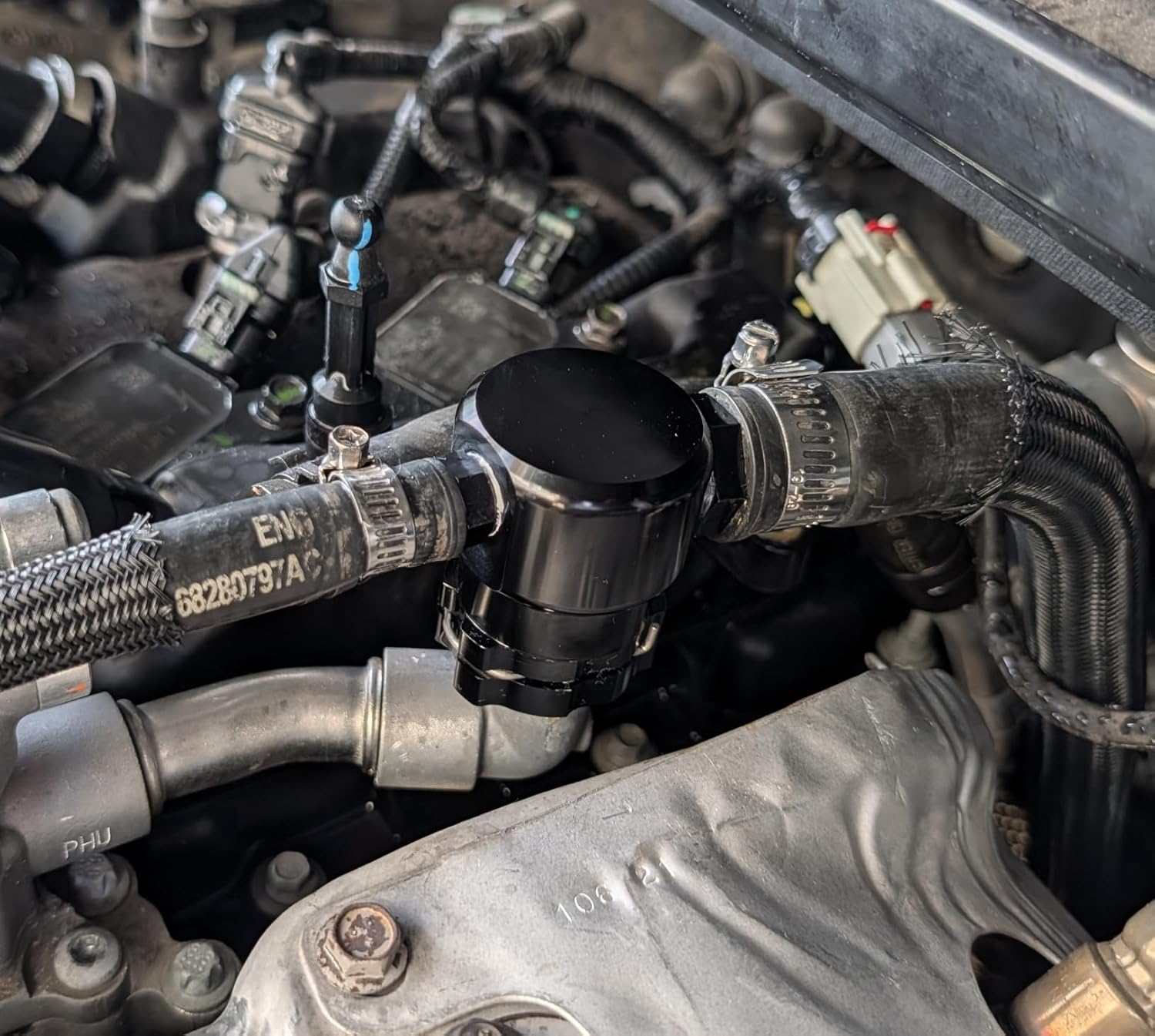The factory plastic heater hose T-fitting on the Jeep Wrangler JL 2.0L turbo engine is a well-known weak point. Over time, heat cycling causes the OEM plastic fitting to become brittle, crack, or fail—often resulting in coolant leaks and unexpected breakdowns.