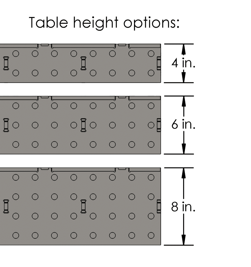 Jig Tables, 50 Table Sizes, 3 Height Options, and Different Hole Options Available