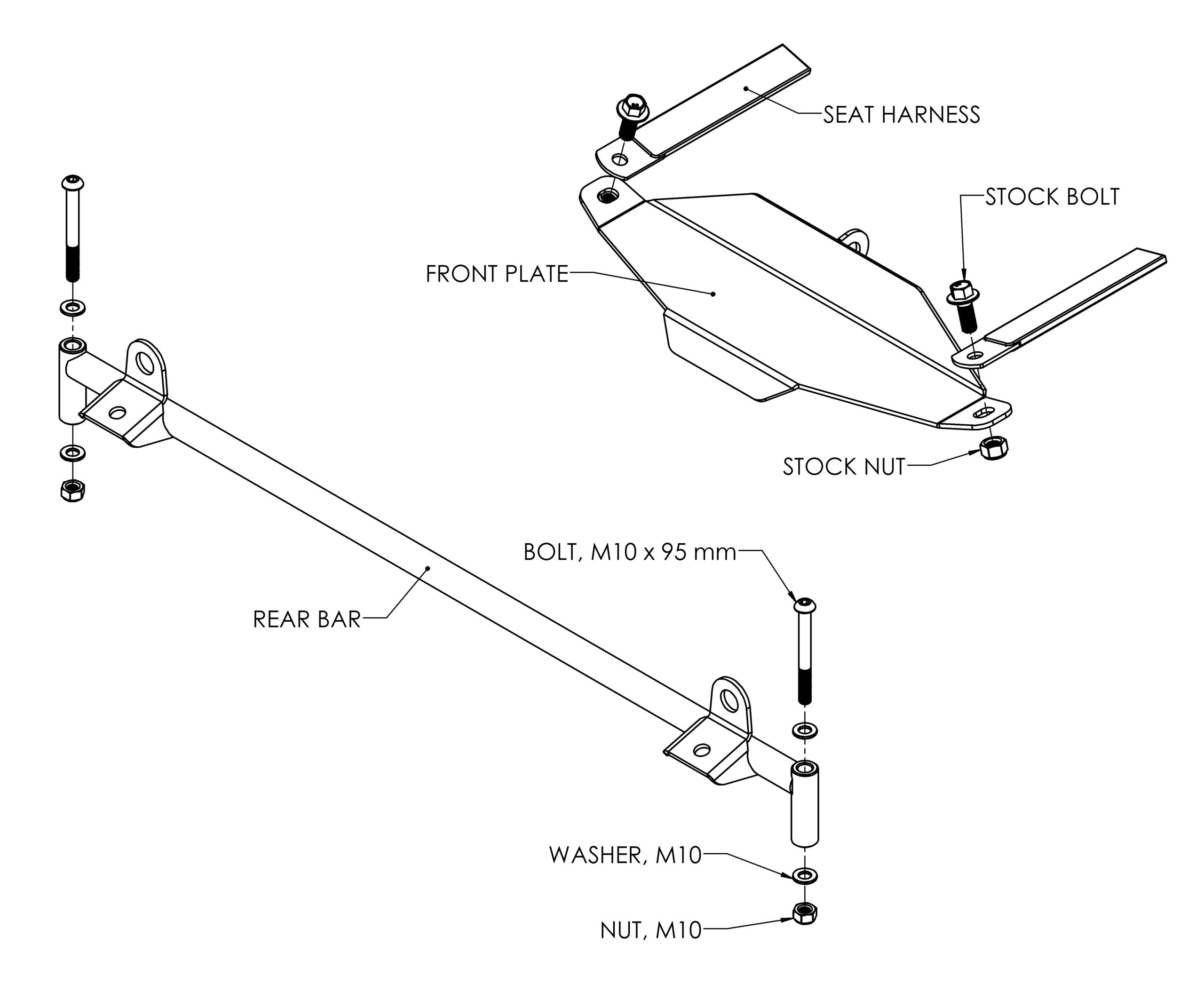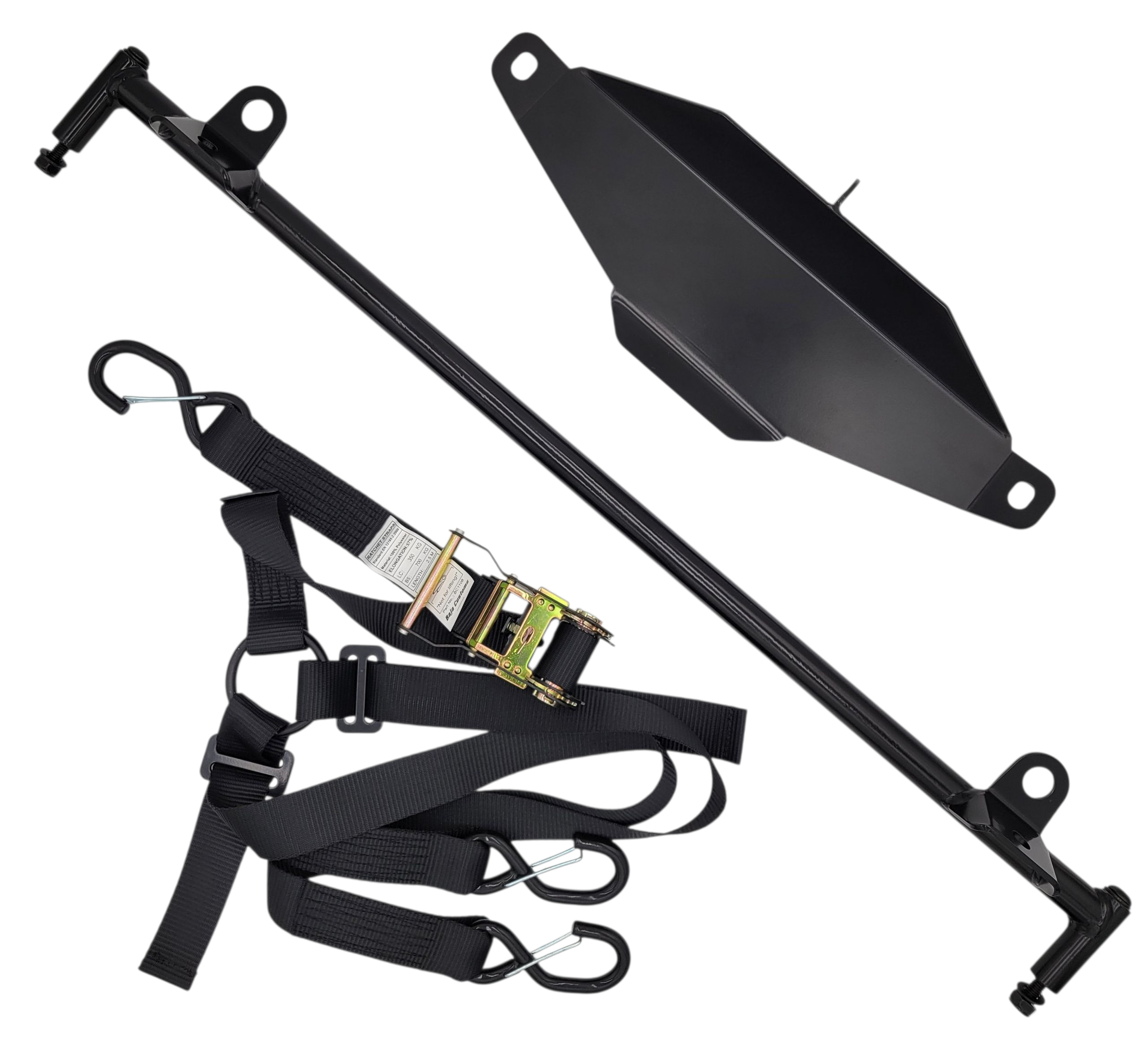 • Kit includes the front tire plate, rear tire bar with hardware and a 3-way tire strap.