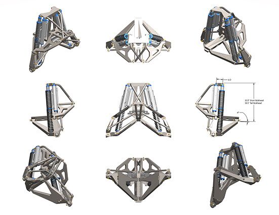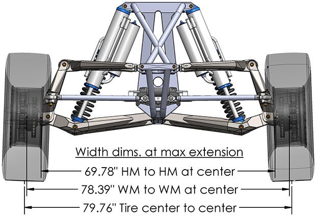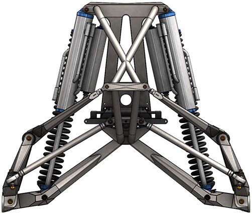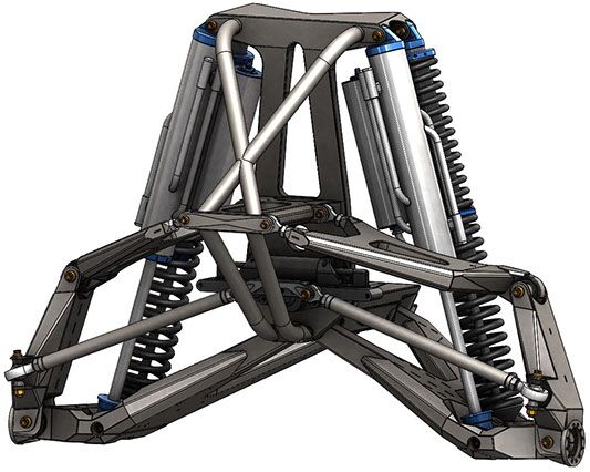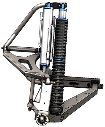- Lower arm mount structure maximizes wheel travel without compromising strength.